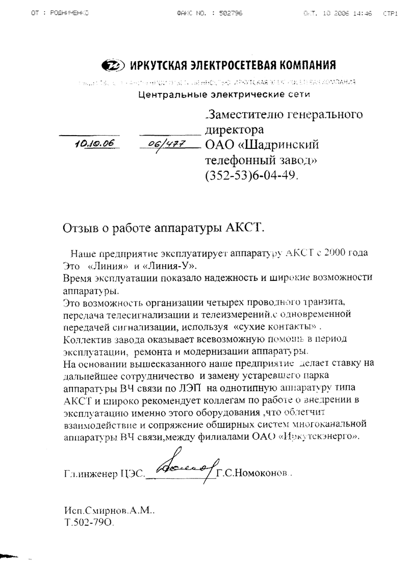(352-53) 6-24-33 - начальник КБ аппаратуры ВЧ связи